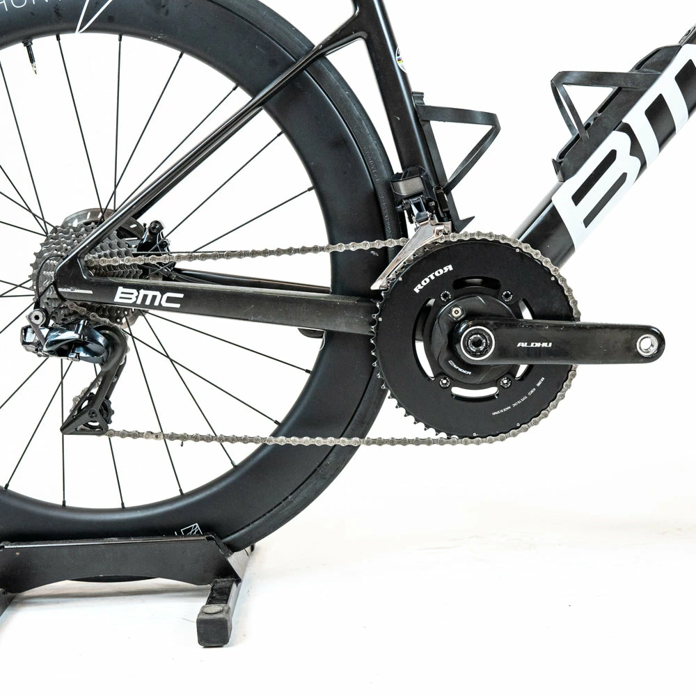Extras: Bottle rack, Out-front computer mount, Chain catcher, Di2 charger, Rotor power meter charger