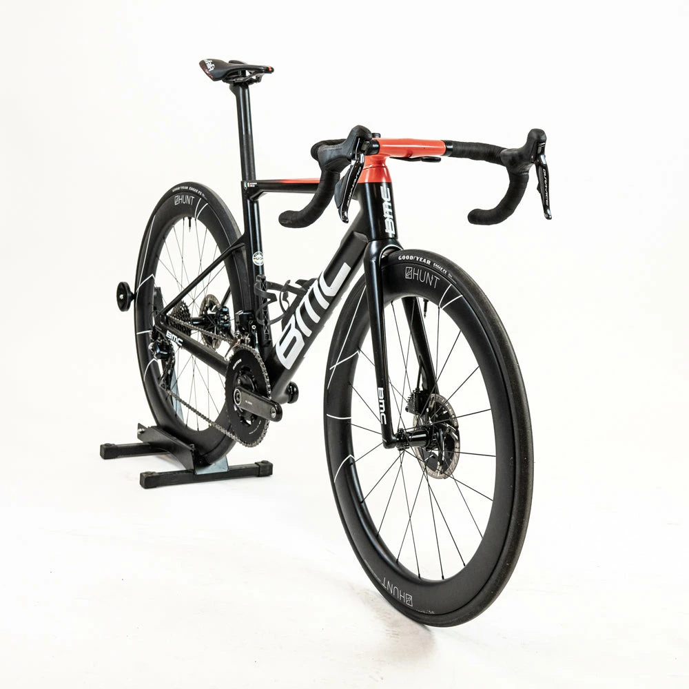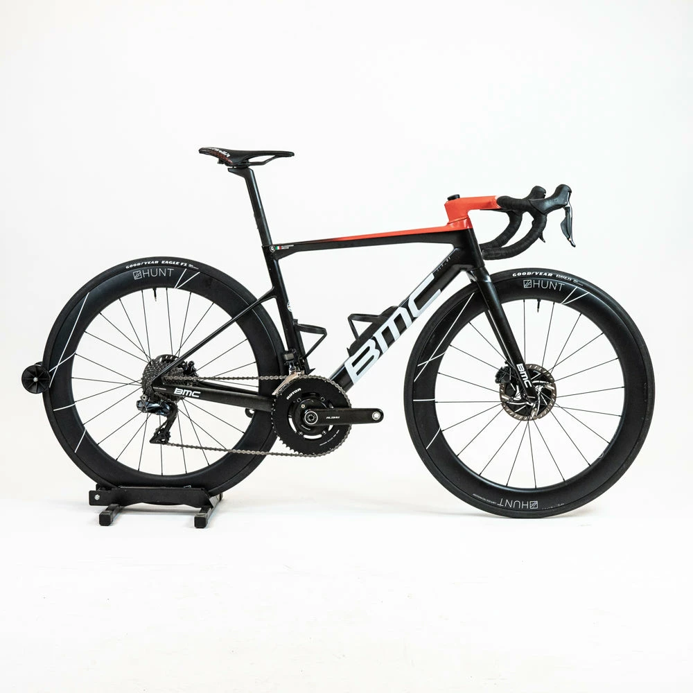 The bike frame is in Very good condition and the components are used – please see the details below. The bike is built with a Shimano Di2 groupset, a Rotor carbon power meter crankset, team-specific components, and a Hunt Aero disc wheelset.