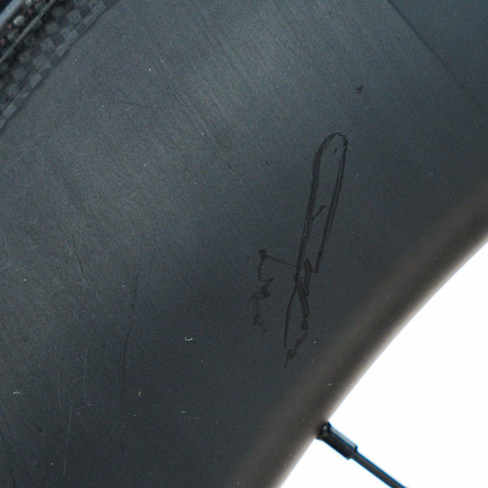 Scratches: Fork, Chainstay, Down tube, Seat stay, Top tube, Seat tube, Derailleur, Levers, Crankset, Wheels