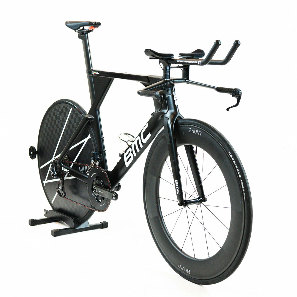 The Frameset has been used but is in Very good condition. The frameset is built with a Shimano Dura-Ace Di2 groupset, a Rotor power meter carbon crankset, team-specific BMC components and a Hunt Aero TT-specific wheelset.