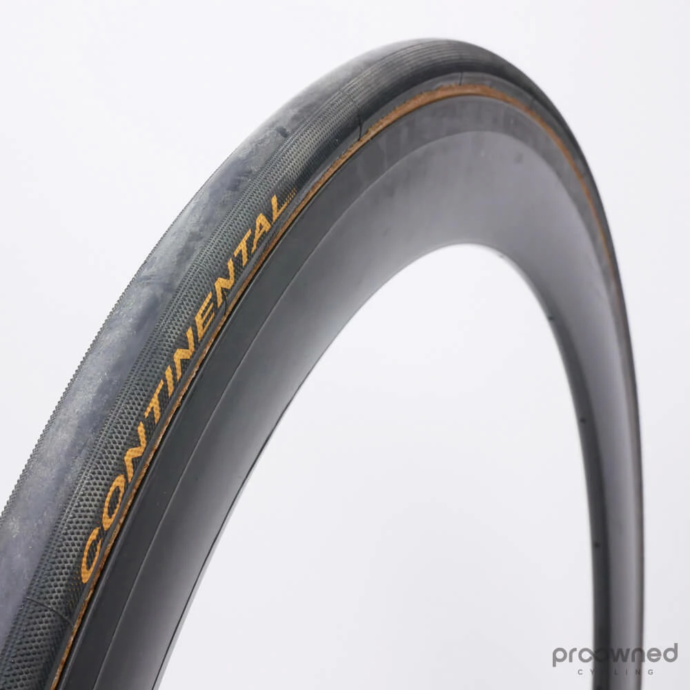 This particular tubular tire is the extremely rare Pro Limited version. This is a special version only supplied to sponsored pro teams, and they usually are not available in public cycling stores. This edition is the ALX RS Profile with a slick center tread that minimizes the rolling resistance but keeps the standard competition diamond thread. Pro Limited is considered the holy grail of tubular tires, and even teams who are not sponsored by Continental sometimes use them in an unbranded version for the most important races.