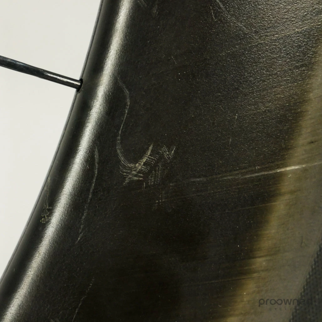The wheel has some small marks and scratches. They are purely cosmetic and don’t affect the strength and the performance of the wheelset. The brake track is in good condition. Overall, the wheel is in great condition.