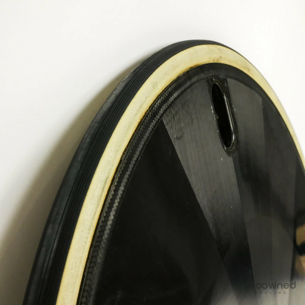 The wheel is equipped with a Vittoria Corsa Speed 25c tubular tire which is as new and in great condition.