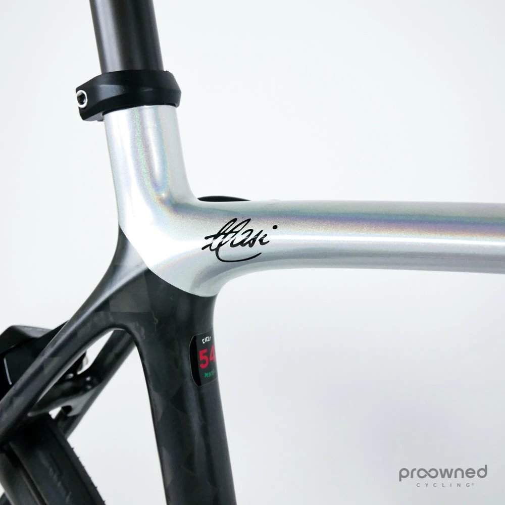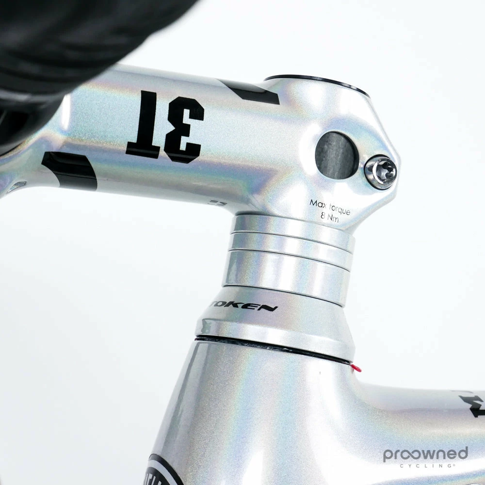 The beautiful silver painting shines like a rainbow in the sun, and a nice feature is the custom-painted 3T parts in the same color.