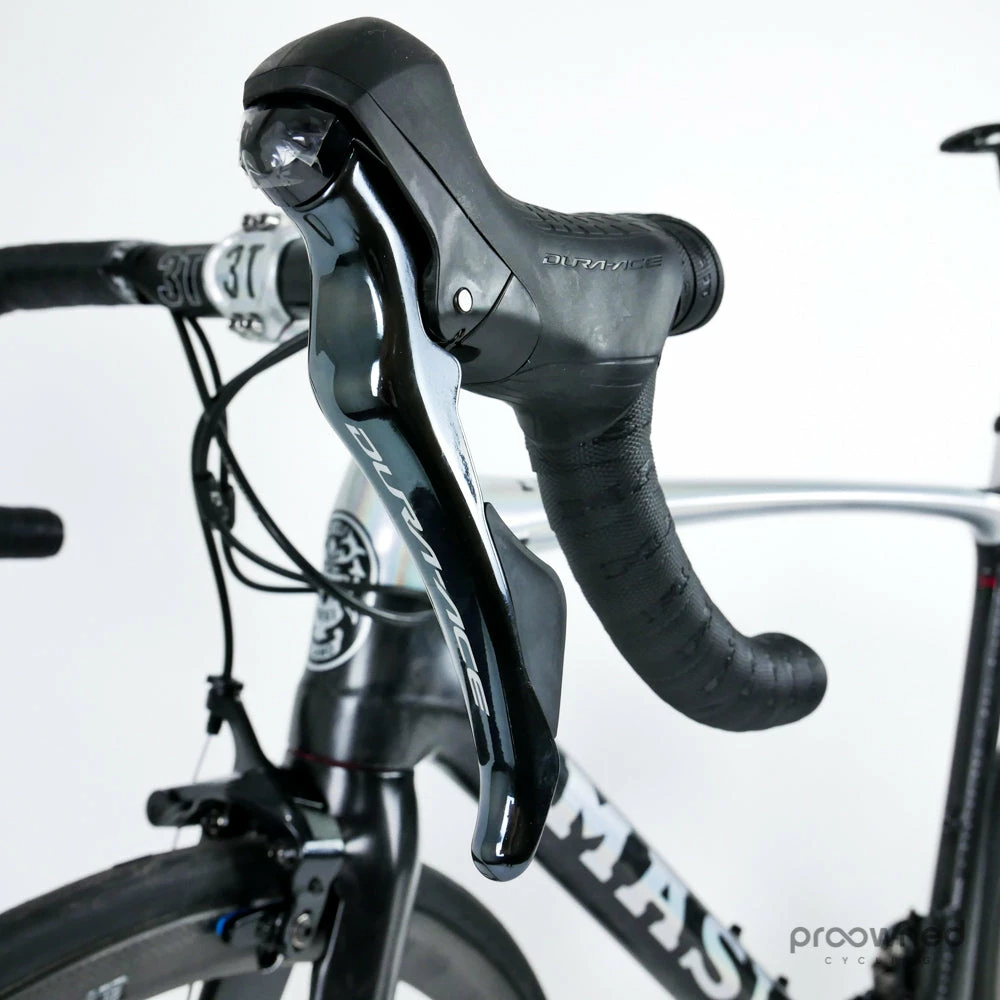 Brand new Masi Evoluzione carbon road bike with Shimano Dura-Ace R9100 groupset and 3T Orbis carbon clincher wheels.