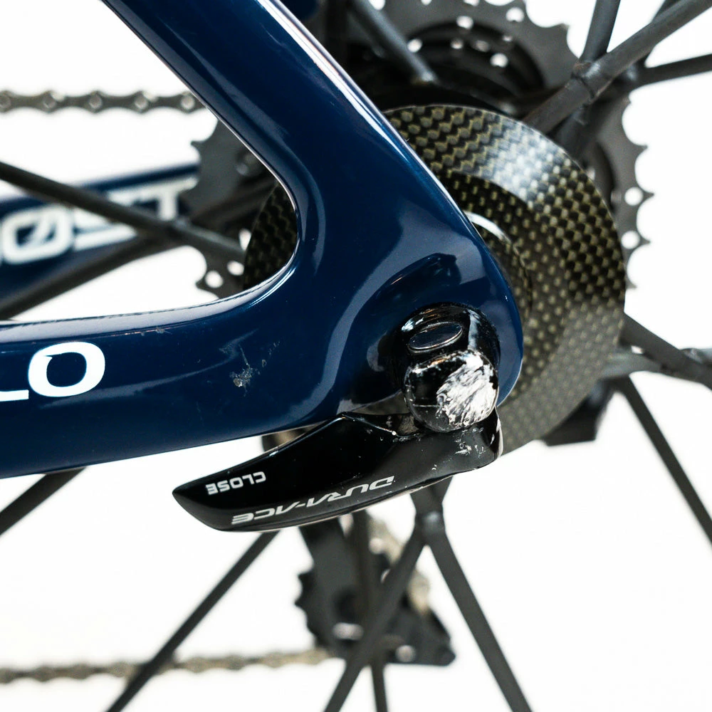The condition of the bike frame is As new, and the components are Brand new, As new and Very good – please see the details below. The bike is built with a Shimano Dura-Ace Di2 groupset, team-specific components, and a Lightweight Meilenstein Obermeyer wheelset.
