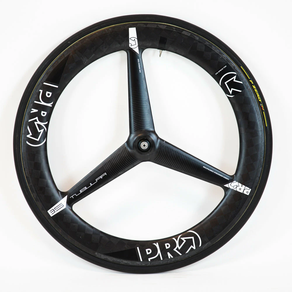PRO TeXtreme 3-Spoke tubular carbon front wheel for rim brake.