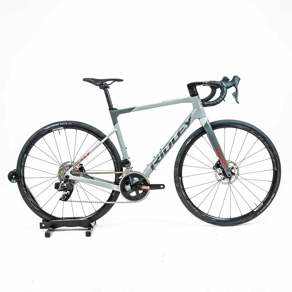 Brand new Ridley Grifn carbon allround gravel bike with disc brakes and SRAM 2x Rival eTap AXS groupset featuring a Forza Norte G wheelset.
