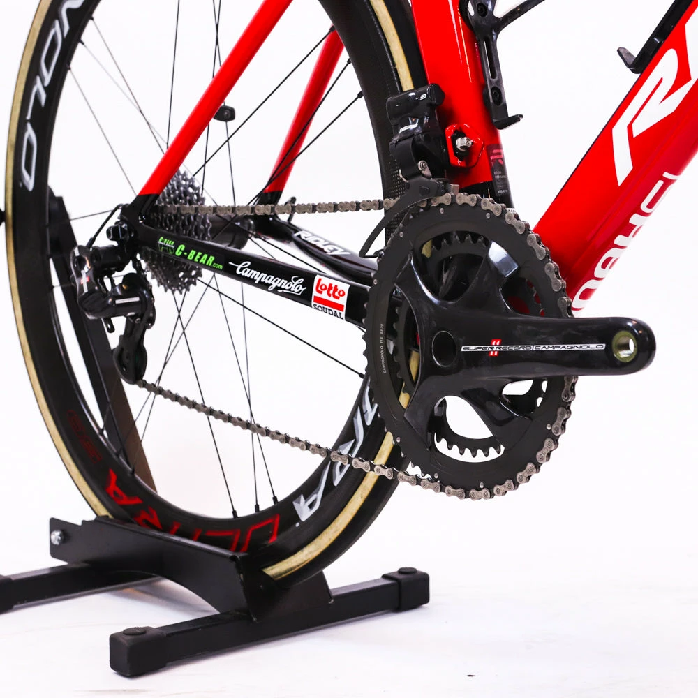 Ridley Noah SL carbon road bike with rim brakes and Campagnolo Super Record EPS 11-speed groupset featuring a Campagnolo Bora Ultra 50 carbon wheelset.