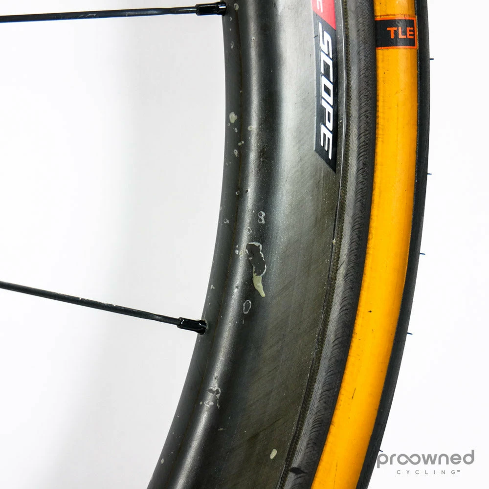 The wheels are sold with different tire options. The conditions of the tires variate from new to used but they are all ready to ride. All the tire options are set-up with tubeless!