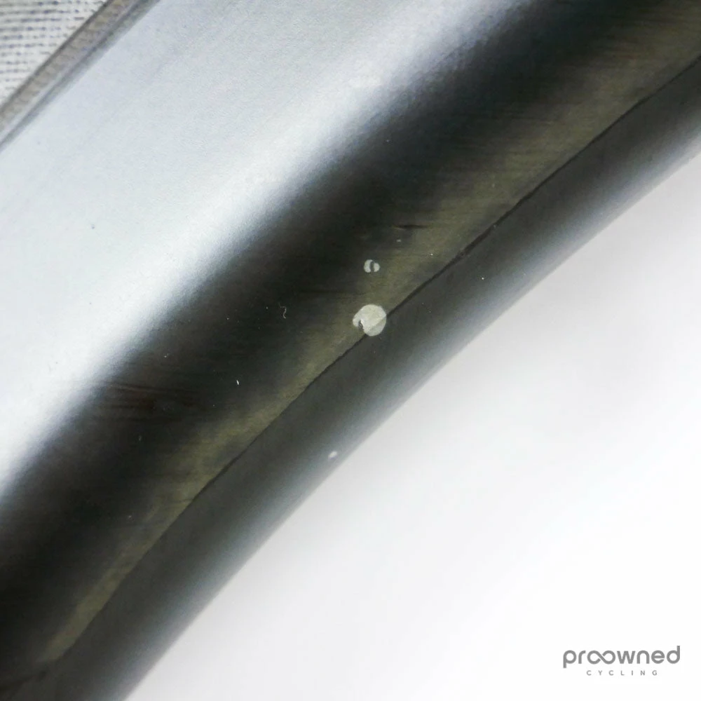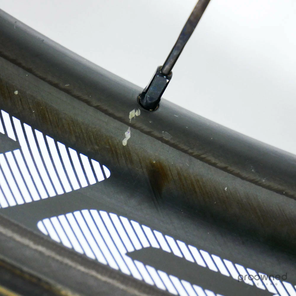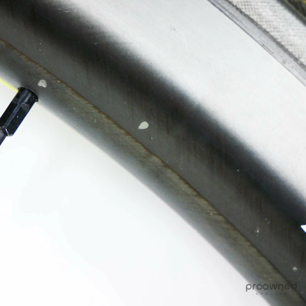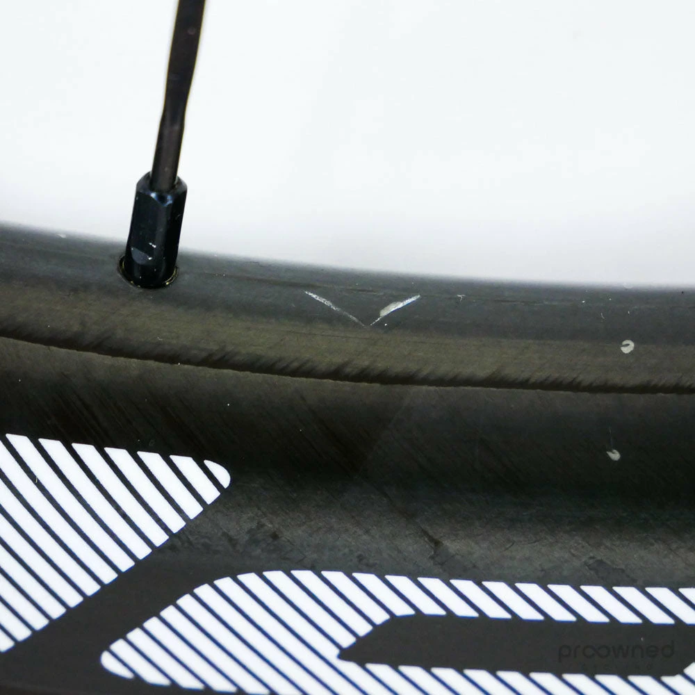 The wheel is sold with a pre-installed Schwalbe Pro One HT 25mm tubular tire. The tire is used but is in very good condition.