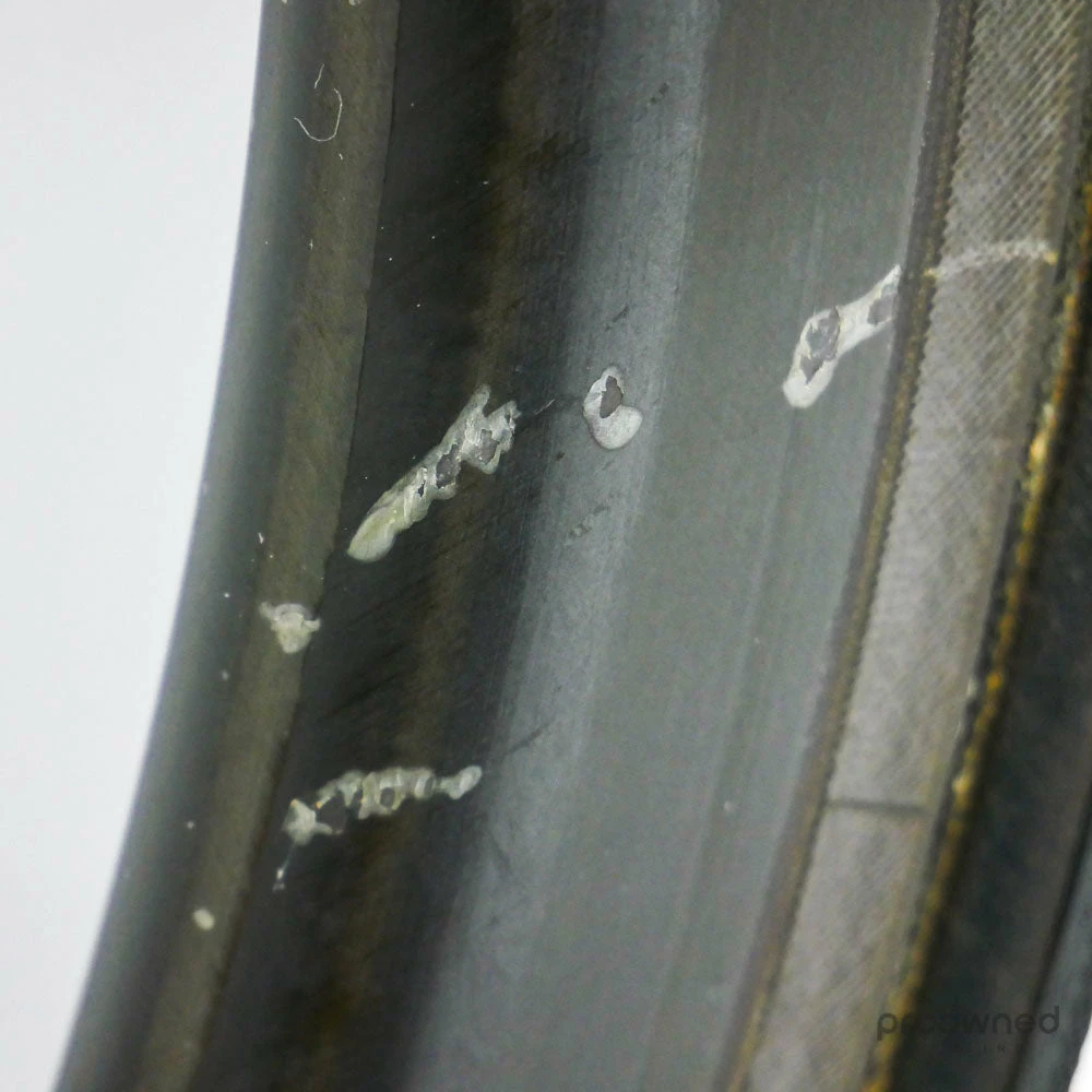 The wheel is used and has some small scratches, the braking surface is slightly worn but the wheel is still in overall good condition.