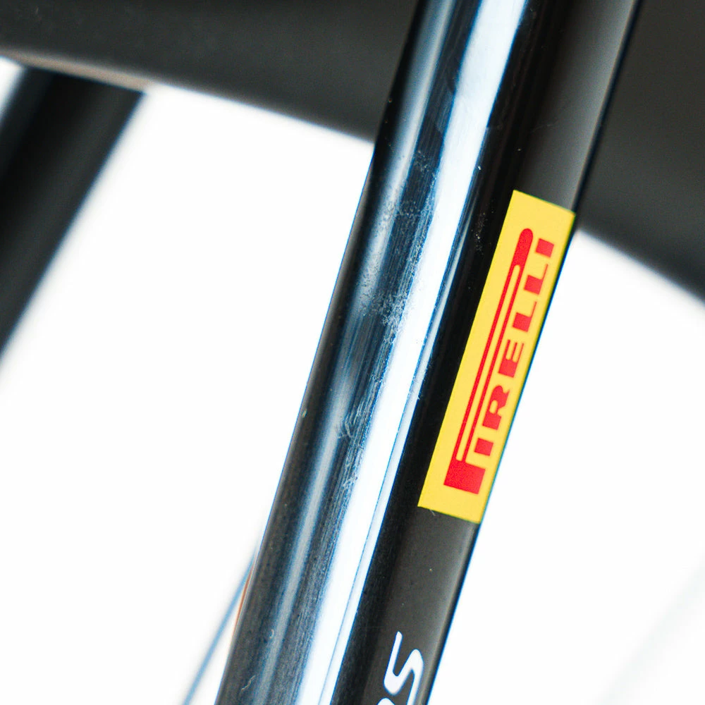 The bike frame is in Very good condition, and some of the components are As new, other more used – please see the details below. The bike is built with a Shimano Di2 groupset, team-specific Syncros components, and a Rebel Royal Carbon disc wheelset.