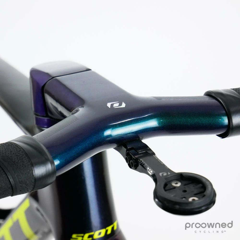 A clear demonstration of Scott’s commitment to integration is the new Syncros Combo Creston iC SL carbon bar and stem. The cables route internally from the hoods, into the bars, through the stem and the head tube. The Combo Creston iC SL bar even allows mechanical shifter cables to run internally too.