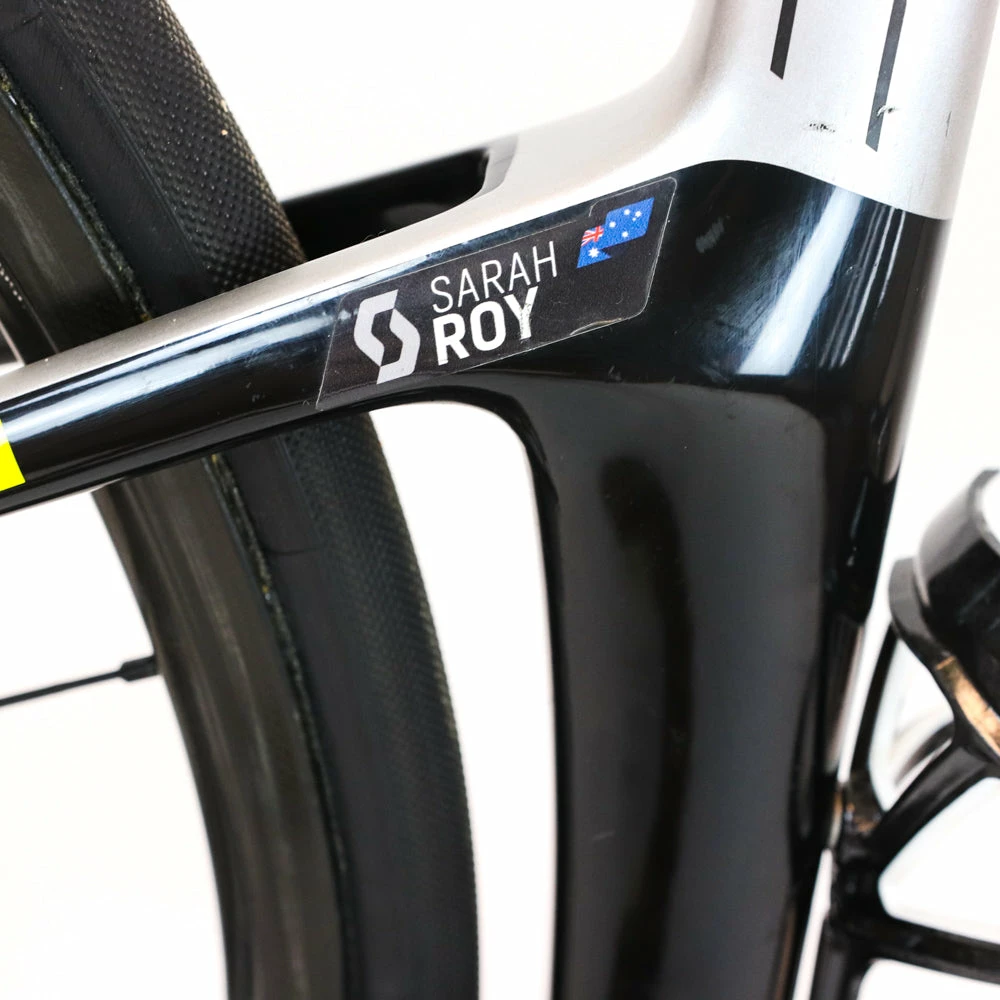Scott Foil RC PRO carbon road bike from Women’s World Tour team Mitchelton, featuring a Dura-Ace Di2 11-speed groupset and a Shimano Dura-Ace C24 rim carbon wheelset.