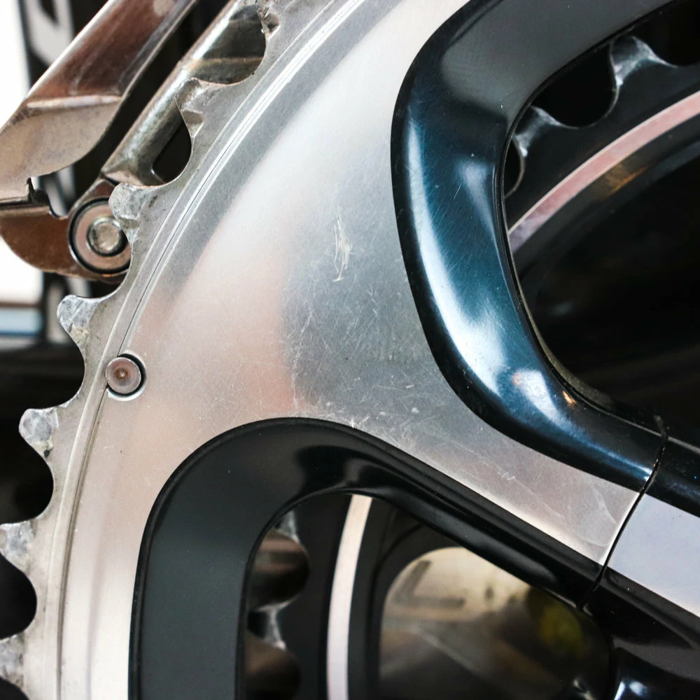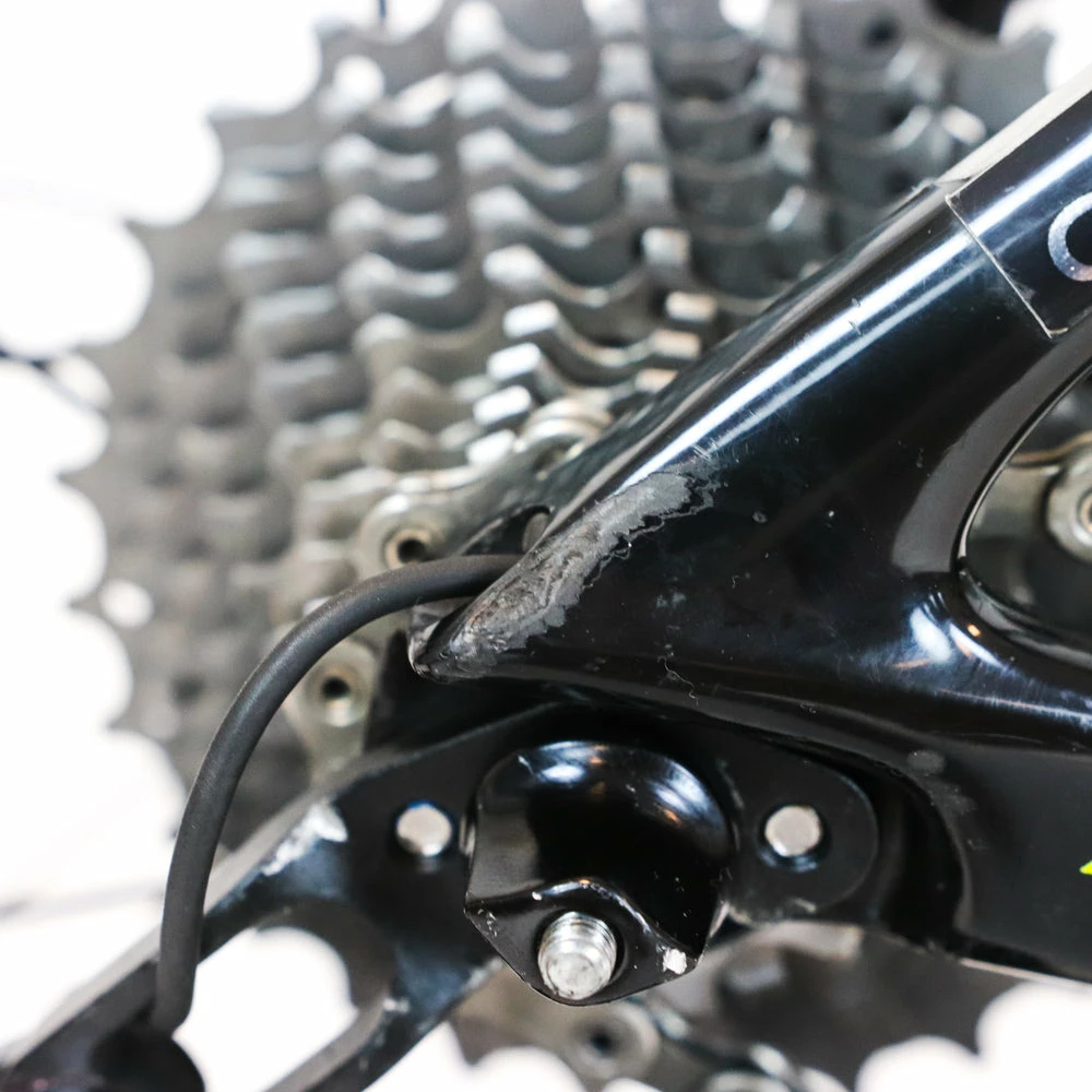 Scratches: fork, seatpost, chainstay, down tube, seat stay, head tube, top tube, seat tube, derailleur, crankset