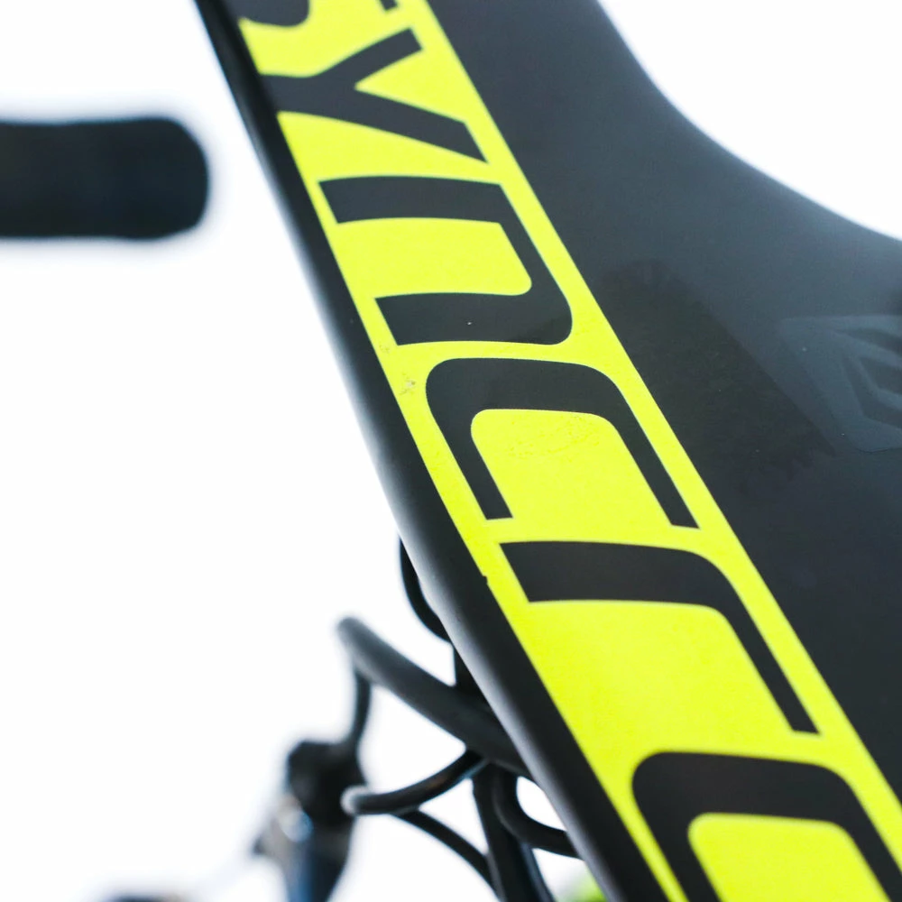 Scratches: fork, handlebar, chainstay, down tube, top tube, seat tube, derailleur, saddle