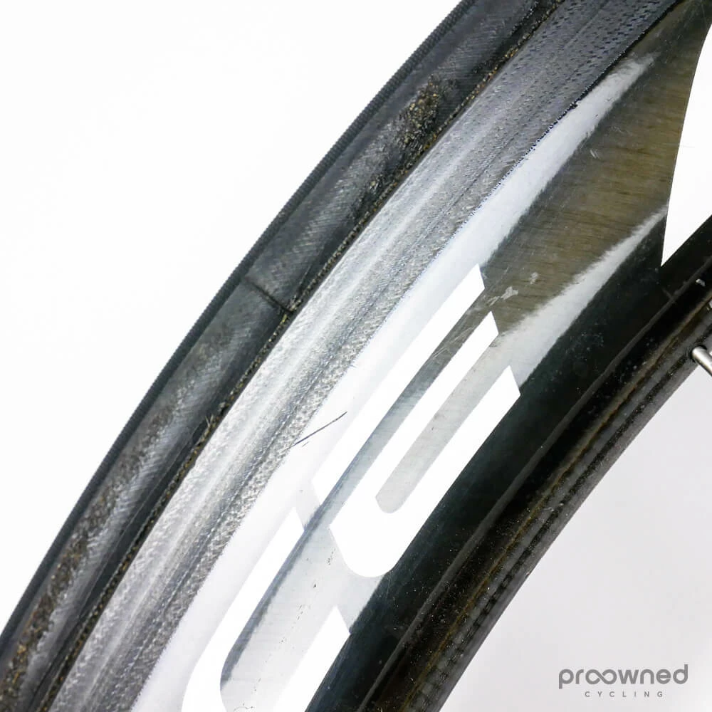 The front wheel is used and has small scratches. The braking surface is in overall good condition. Bearings run perfectly.