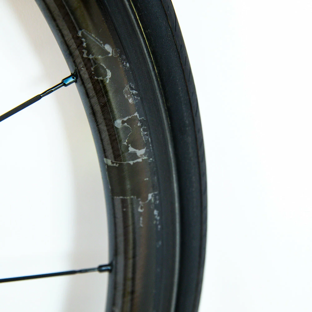The wheelset is used. It comes with some marks from usage (mostly clearcoat). The wheels are in good condition with some scratches. The bearings are in okay condition and there are many miles left in them. Both tires are used but in good condition.