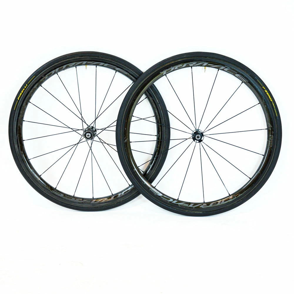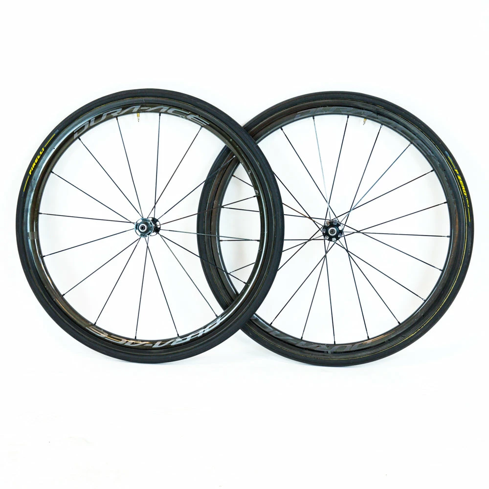 Shimano Dura-Ace C40 WH-R9100 tubular carbon wheelset for rim brakes.