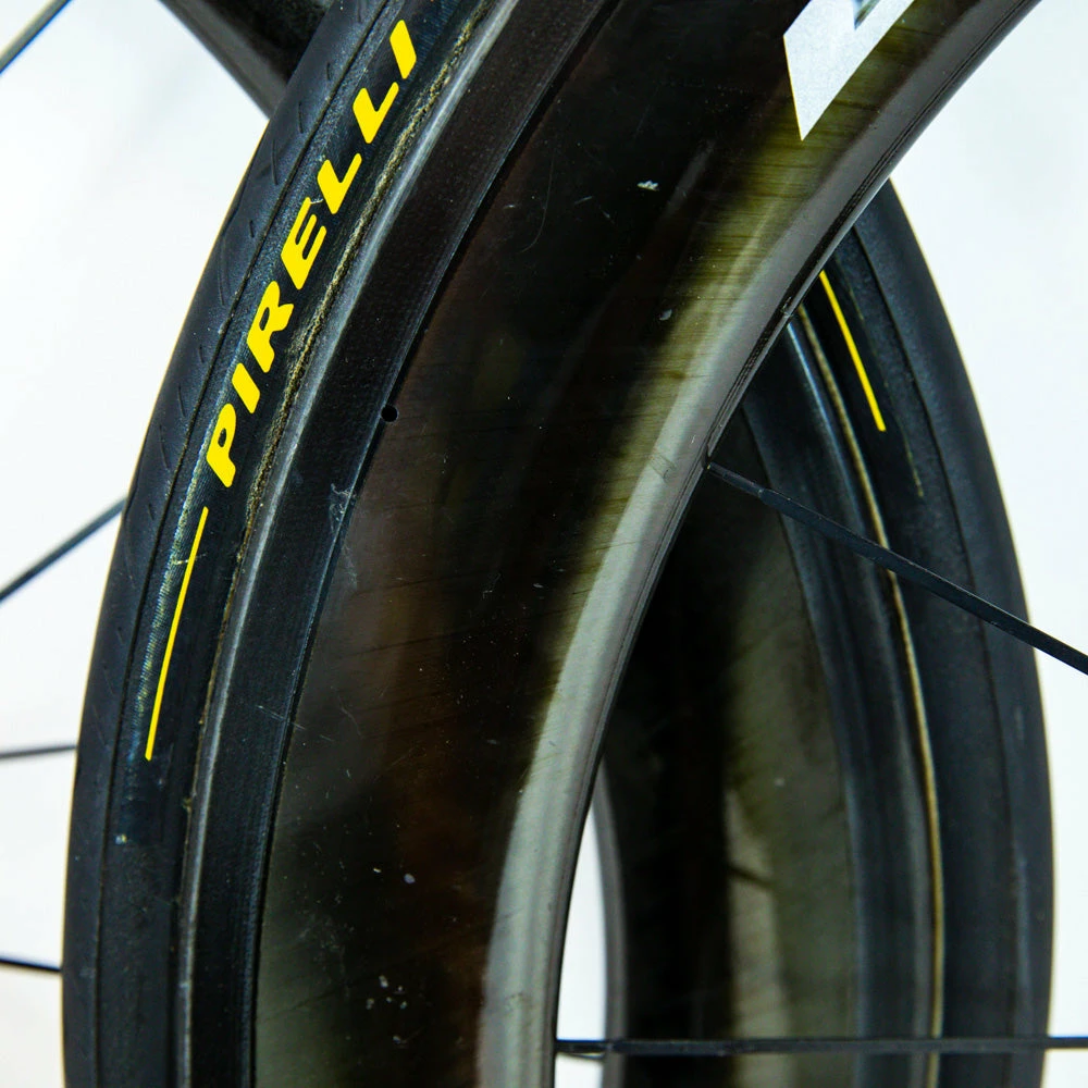 This wheelset comes with Pirelli P Zero Velo tubular tires mounted by the team mechanics. The race-ready lightweight tire is a fast and durable choice and offers great puncture protection as well as speed. The P Zero Velo is made for racing with low rolling resistance making it perfect for Granfondo raced and shorter high-speed racing.