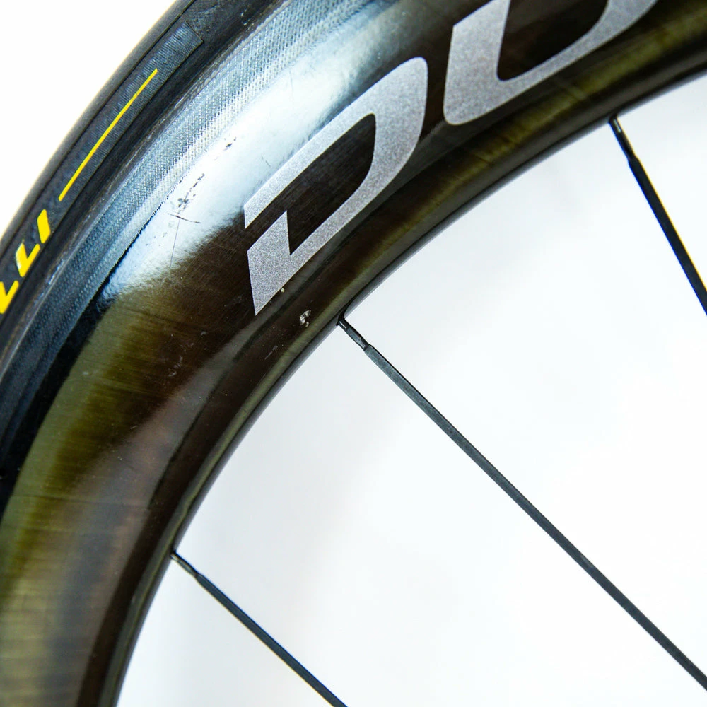 This wheelset comes with Pirelli P Zero Velo tubular tires mounted by the team mechanics. The race-ready lightweight tire is a fast and durable choice and offers great puncture protection as well as speed. The P Zero Velo is made for racing with low rolling resistance making it perfect for Granfondo raced and shorter high-speed racing.