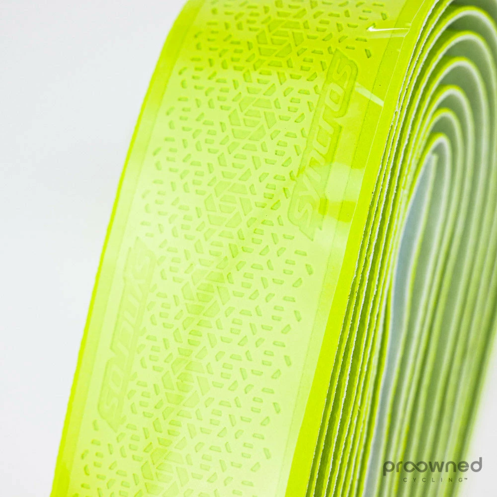 The bar tape is made of EVA foam with an embossed Syncros pattern. The combination of the materials and the pattern ensures that your hands stay on the handlebars